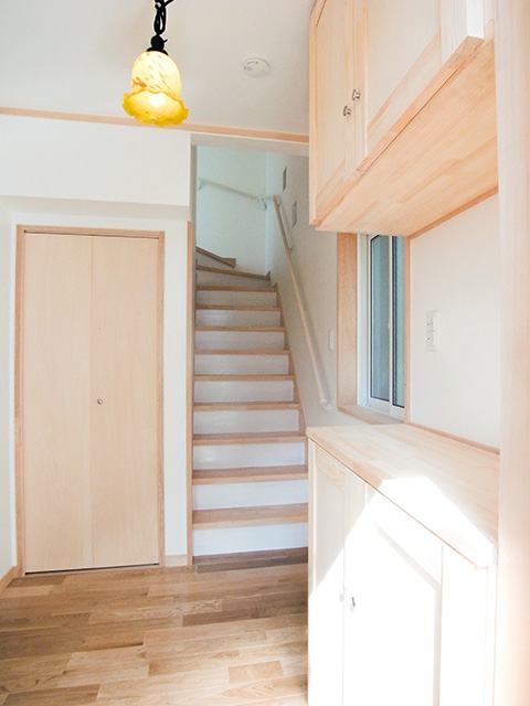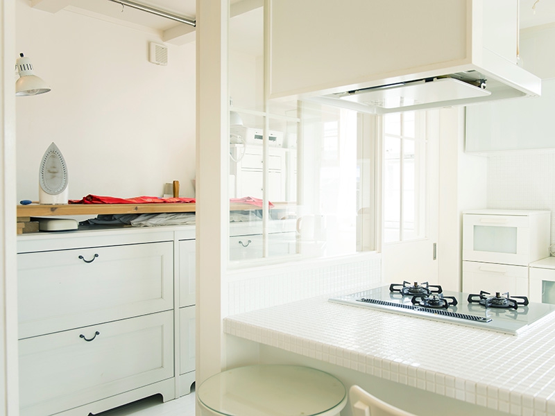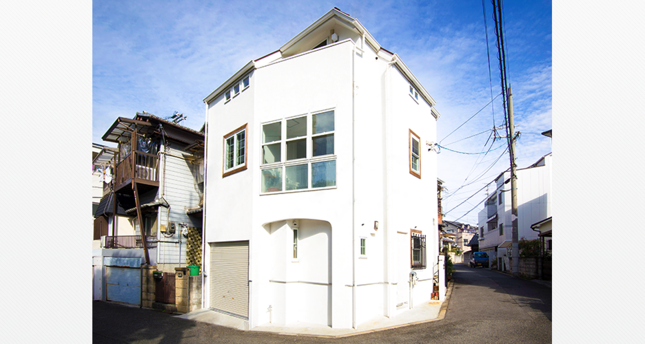 ピユアホワイトの家。敷地15坪、都心部に建替で新築された白亜の邸宅。個性豊かな外観は、ランドマークとしての存在感を醸しています。外観、内装ともに純白を基調としながら、床材や枠材等には無垢の木を使用。色彩と質感にコントラストが生まれ、木の風合いを際立たせています。LDKに彩りを添えるのは、オーダーメイドされたお施主様こだわりのキッチン。さらに室内には既存の建物から再利用された趣あるガラスや建具を融合することで、モダンと懐かしさをあわせ持つ安らぎの空間が誕生しました。